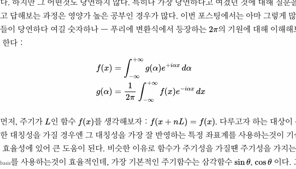 푸리에 변환의 2𝜋는 어디서 왔나?