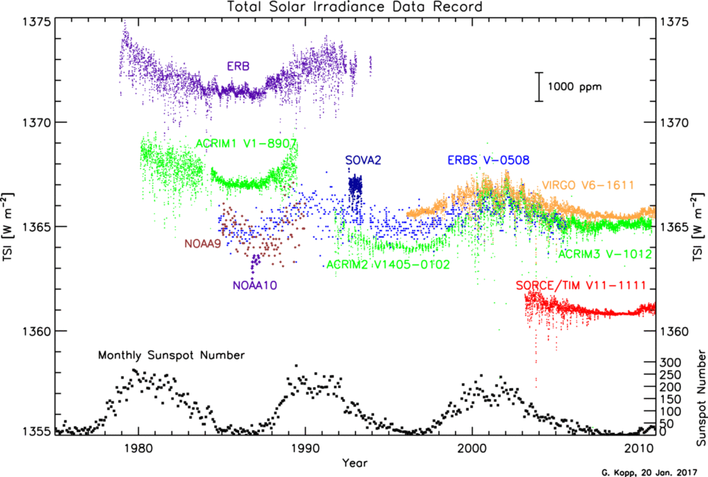 2013년 IPCC 5차 보고서 > Working Group Ⅰ > 8.4.1.1 Satellite Measurements of Total Solar Irradiance :