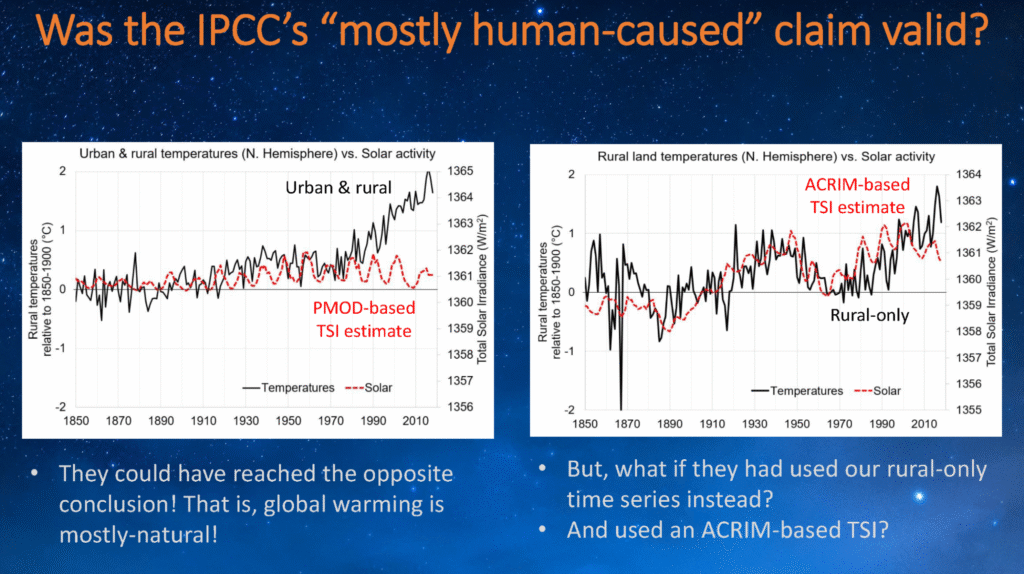 Soon은 초기장비의 성능저하를 고려하지 않은 ACRIM 데이터에 태양흑점에 대한 잘못된 가정을 더해 ‘아주 흥미로운 태양! A very interesting Sun!’을 만들어냈다. 그리고 그는 그 다음 슬라이드에서 의심의 씨앗에 싹을 틔워 기후과학을 그럴듯해보이는 plausible 덩굴로 덮으려 한다.