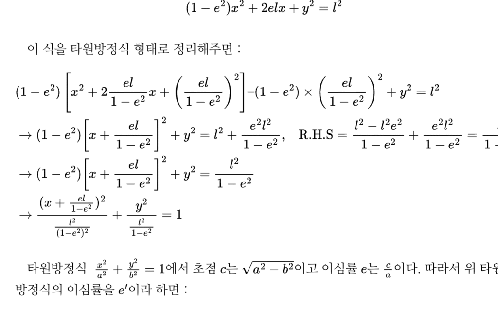 타원방정식의 극좌표 표현